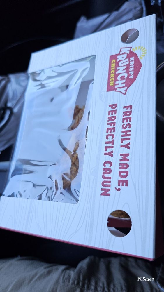 Morsels of juicy chicken with skin are bathed in Krispy Krunchys signature marinade, breaded and fried to crispy, golden perfection, then topped with a sprinkle of our Perfectly Cajun Seasoning. (290 Cal)